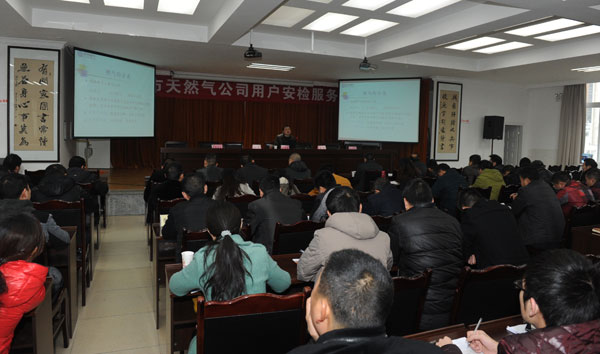 為杜絕和減少天然氣安全事故的發(fā)生,進(jìn)一步保障供區(qū)內(nèi)20萬天然氣用戶生命財(cái)產(chǎn)安全,提升公司整體服務(wù)水平。2月28日,公司組織全體安檢人員開展用戶安檢服務(wù)專項(xiàng)培訓(xùn)。培訓(xùn)邀請了港華燃?xì)鈪^(qū)域客戶支援經(jīng)理劉佳和樂至港華公司副總經(jīng)理唐坤授課。