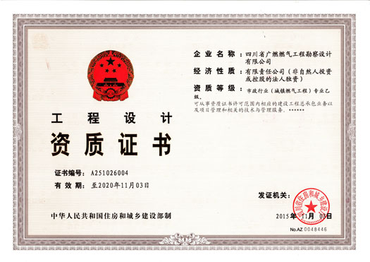 歷時一年的不懈努力,公司全資子公司四川省廣燃燃氣工程勘察設(shè)計有限公司,經(jīng)四川省住房和城鄉(xiāng)建設(shè)廳和四川省質(zhì)量技術(shù)監(jiān)督局核準,取得“市政行業(yè)(城鎮(zhèn)燃氣工程)專業(yè)乙級”和“中華人民共和國特種設(shè)備設(shè)計許可證(壓力管道)”設(shè)計資質(zhì)。自此,公司具備承接壓力小于4.0MPa的城市燃氣管道工程的設(shè)計資質(zhì),結(jié)束了設(shè)計資質(zhì)掛靠的歷史。對于公司發(fā)展多種經(jīng)營具有重要意義。