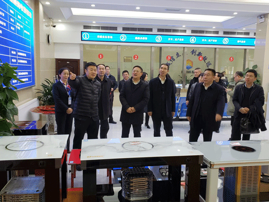 圖為王誠總經(jīng)理調(diào)研廣元燃?xì)庥腊蚕锓?wù)大廳